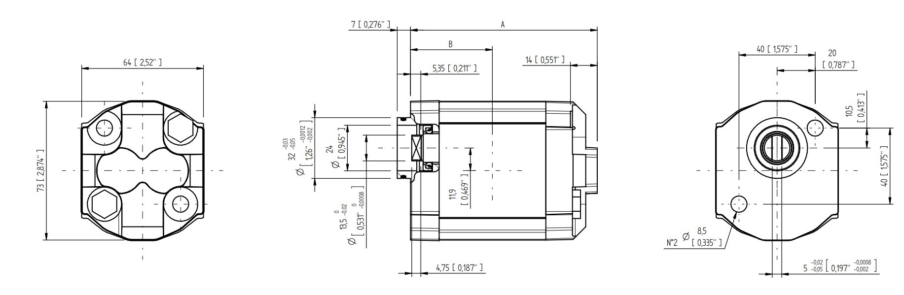 Vinohammaspyörä koneikkopumput sivulähdöillä
