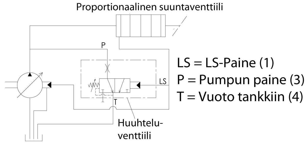 - Liitäntä 1 = LS-linjasta otetaan T-liittimellä ohjauspaine